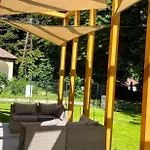 Questo luogo comprende una zona pranzo all'aperto con un bollitore elettrico, un frigo e un forno. L'aeroporto di Hévíz-Balaton dista 70 km da questa villa con 2 camere da letto. Potrai rilassarti sulla terrazza e ammirare la vista sul giardino.